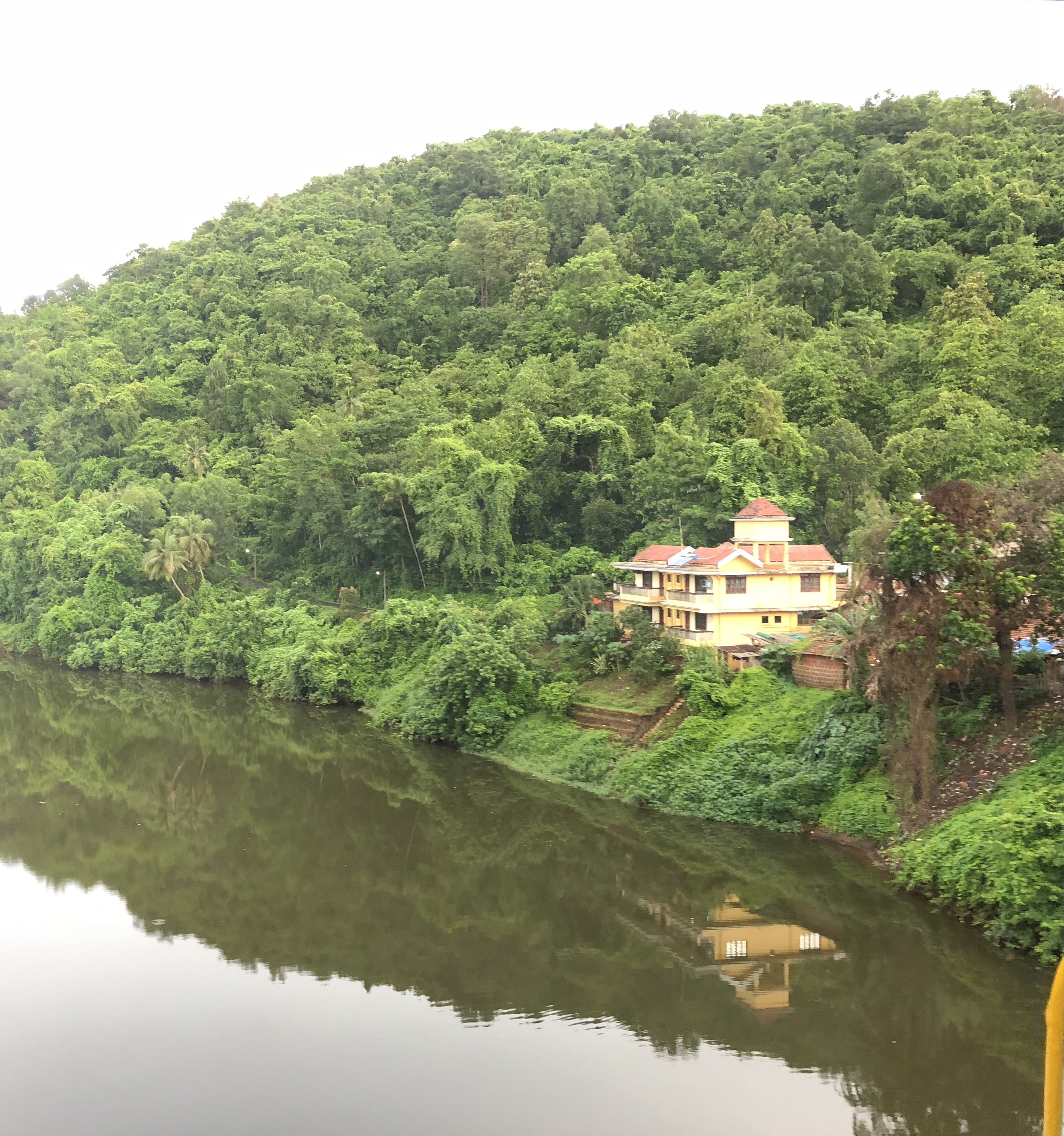 I captured this pic from a train travelling towards Goa from Pune. You can see a house surrounded by forest and river.