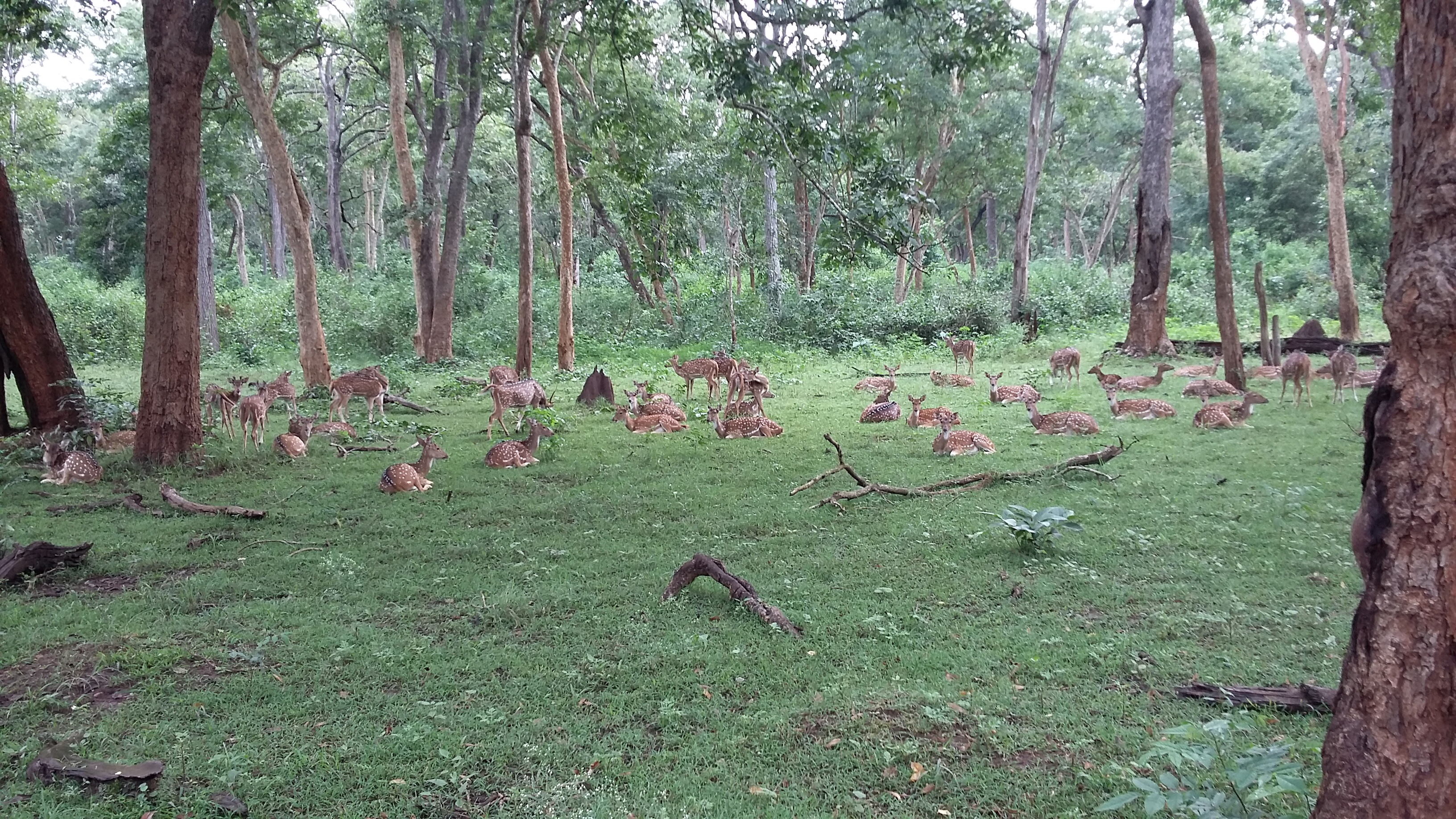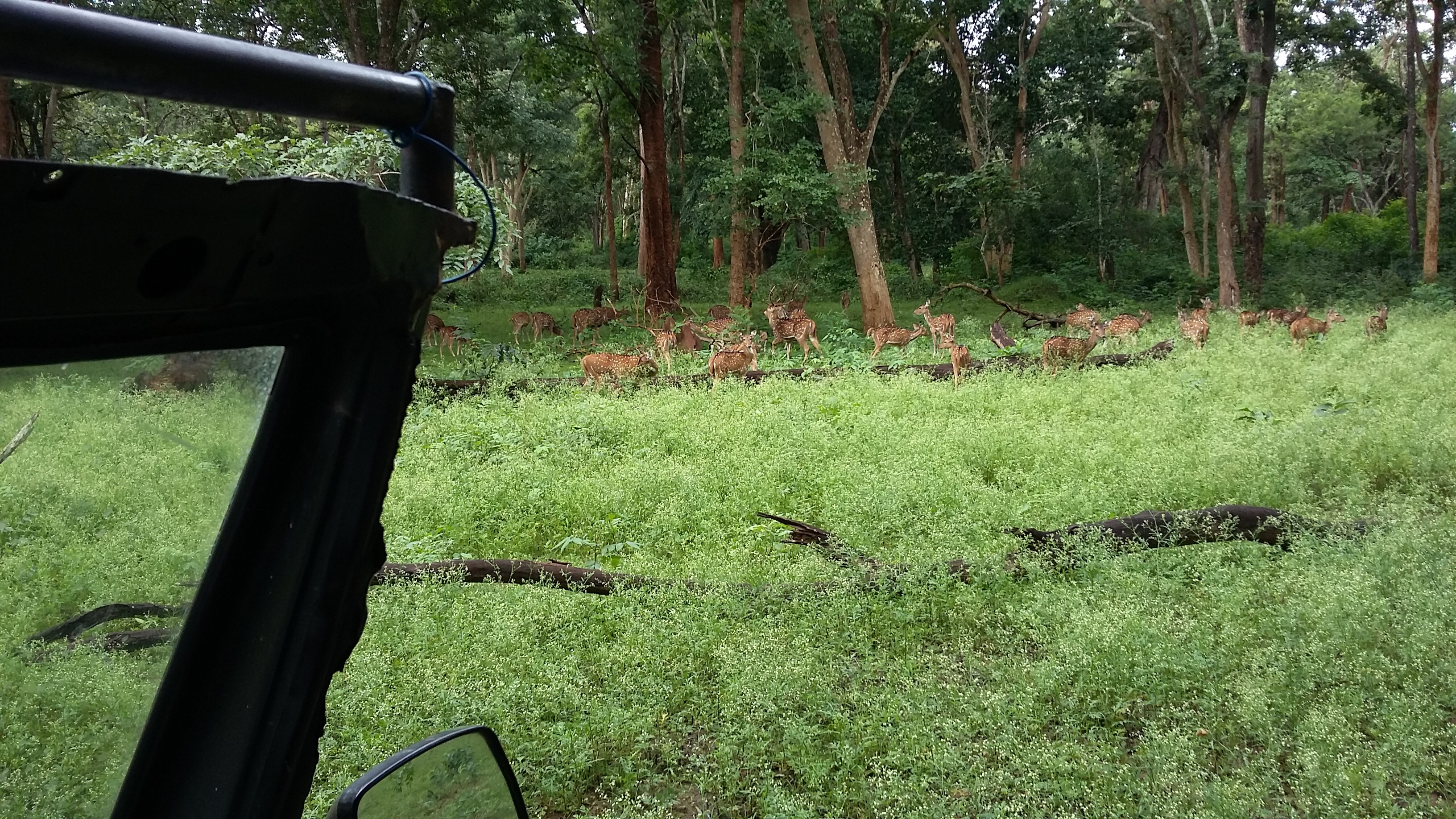After the snack as we headed to our rooms for a short nap, there were this trumpeting sounds surroundings us from all the directions. The person from the hut warned us to not step out as we were surrounded by elephants, we were all eyes till that sound reduced. Here, safari can be opted in two different timings, one from 6-8 in the evening and the other in the midnight. In the midnight safari, we happened to spot great elephants and deers.